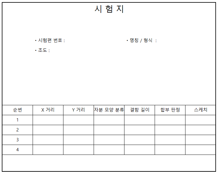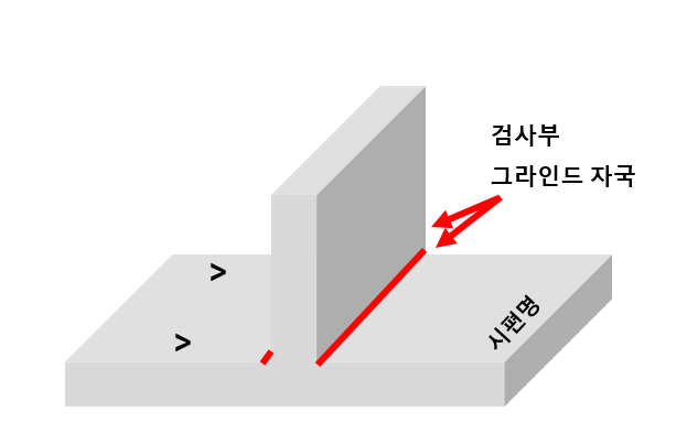 시험편은 T자형이 나왔고, 양쪽 필렛부를 전체 검사하여 3가지 결함을 찾는 것이었다.